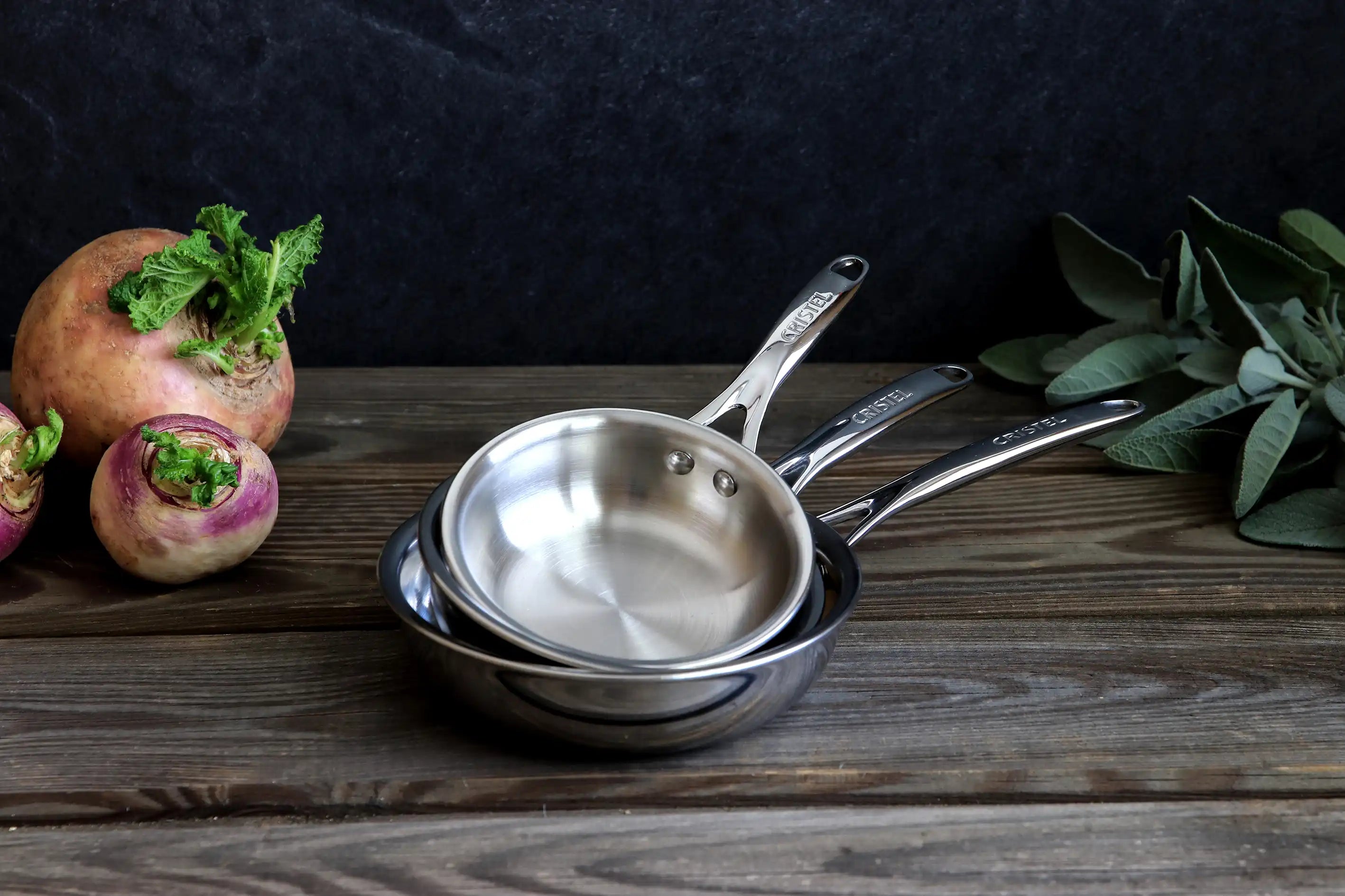 Peralatan masak Cristel sangat dihormati di dapur profesional karena kinerja antilengketnya yang unggul. Wajan baja tahan karat Cristel dilapisi dengan lapisan antilengket unik yang disebut Exceliss+.