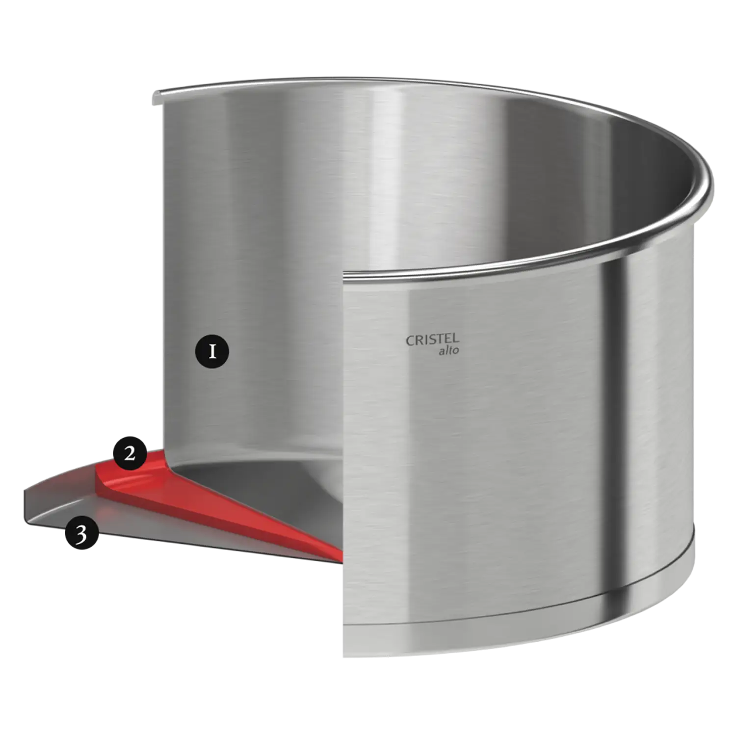 Panci presto Alto, yang dibuat dari stainless steel 18/10 dengan finishing brushed, menampilkan desain yang sederhana, tegas, dan modern—selaras dengan koleksi Strate dari rangkaian peralatan stainless steel CRISTEL.